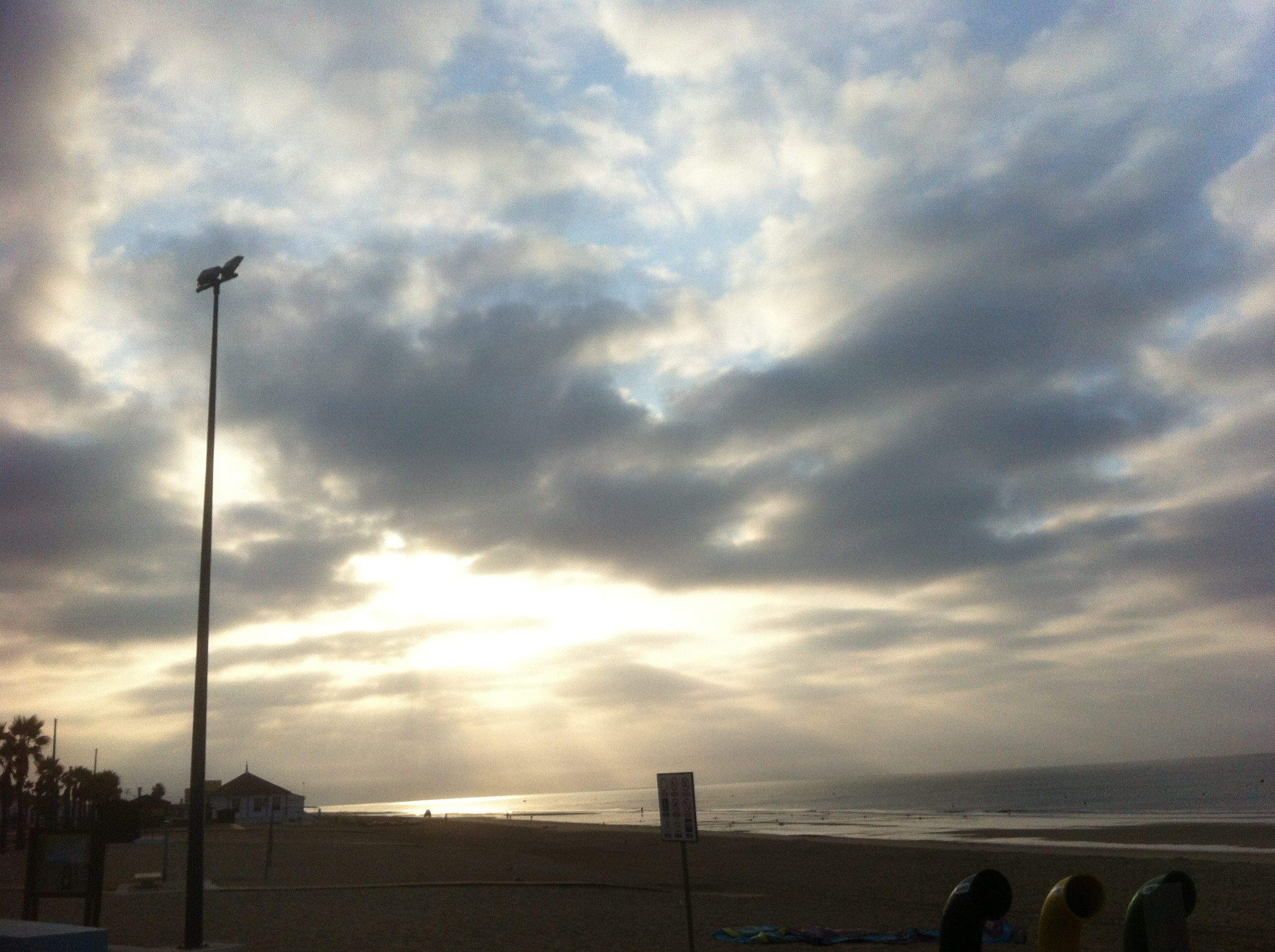Alguna pareja de jóvenes extranjeros tranquiliza a su bebé tan temprano por el paseo marítimo, como si les hubiera despertado un inoportuno llanto, y se hubiera visto compelida a recibir la luz del crepúsculo tan de mañana, que se desperezaba ya en el horizonte.